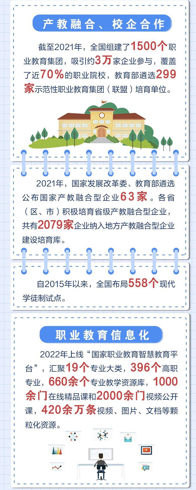 教育部2022年“教育這十年”1+1系列發(fā)布采訪活動繼續(xù)進行中,第三場聚焦職業(yè)教育改革發(fā)展。“云發(fā)布”和“云采訪”后,今天通過一組大數(shù)據,一起回顧職業(yè)教育改革發(fā)展這十年——