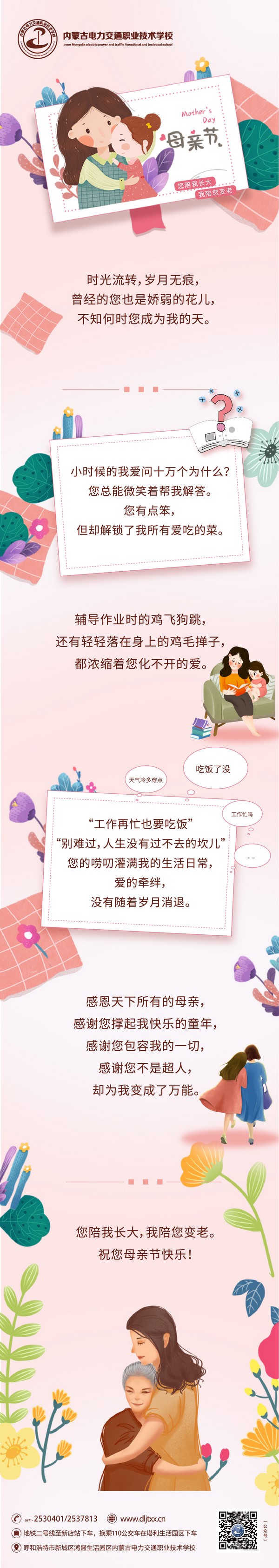 從孕育到成長,從求學到離家,不管多大,孩子都是母親一生的牽掛,世上最溫暖的兩個字是媽媽,她會時刻向你敞開懷抱,給你無盡的愛與支持,她是我們永遠的起點和歸宿,她可能有點絮叨,但嘴硬心軟。她可能曾與你斗智斗勇,但也陪伴你一起成長.....她是你初來人間的第一位守護者,用愛填滿生活中每一個微小日常,今天是母親節(jié),記得說聲:媽媽,我愛你!