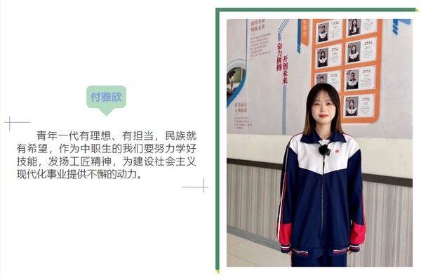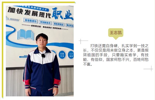我校崔競夫、郝鑫茹、楊宇帆等學(xué)生代表分別進行了主題演講,表達了“技能成才,強國有我”的信心及決心,倡導(dǎo)同學(xué)們發(fā)揚“大國工匠”精神,力爭早日成為技能強、素質(zhì)優(yōu)、能擔(dān)當(dāng)?shù)母呒寄苋瞬拧?/span>
