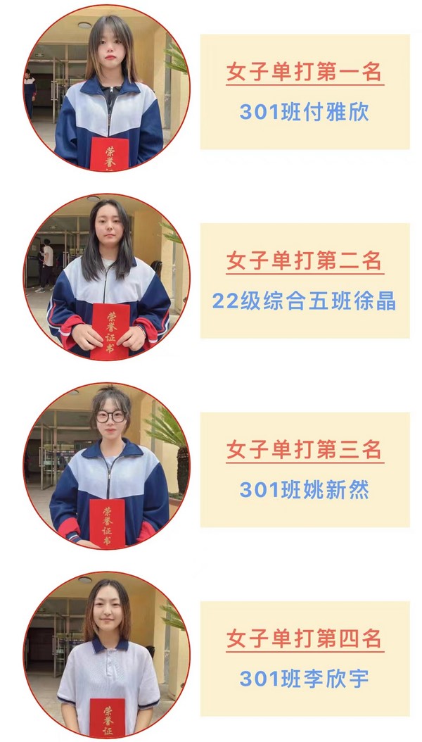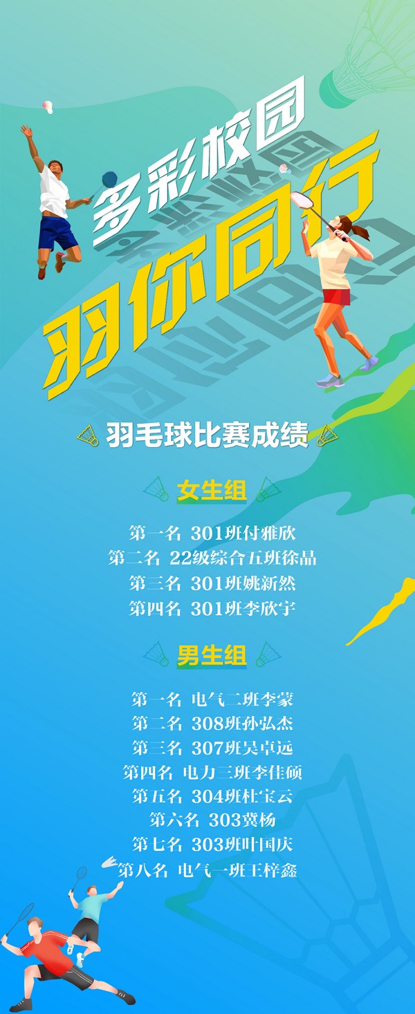 比賽場上精彩不斷、喝彩不斷,運動員揮灑汗水、努力拼搏,經(jīng)過激烈的角逐,本屆校園羽毛球比賽的男單、女單項目榮譽各有歸屬。