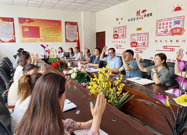 會(huì)議第一項(xiàng)議程討論將入黨積極分子王瑞麗同志確定為發(fā)展對(duì)象事宜。首先由高書(shū)記代表學(xué)校黨支部提出意見(jiàn),認(rèn)為王瑞麗同志在一年多的考察期內(nèi)表現(xiàn)優(yōu)異,入黨動(dòng)機(jī)端正,能夠積極向黨組織靠攏,用黨員標(biāo)準(zhǔn)嚴(yán)格要求自己,起到了一定的模范帶頭作用。經(jīng)會(huì)議現(xiàn)場(chǎng)集體投票表決,大會(huì)一致同意將王瑞麗同志確定為發(fā)展對(duì)象。