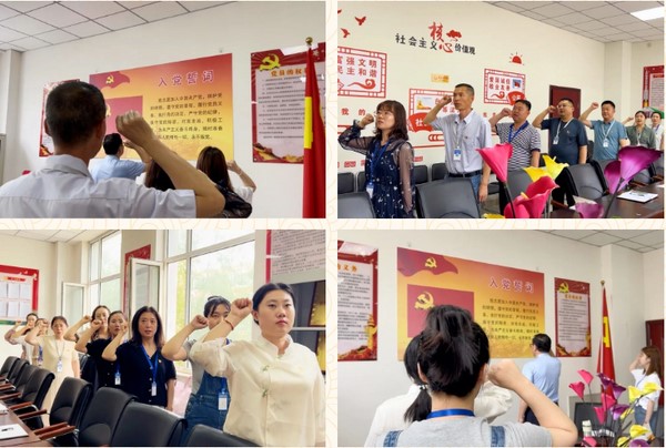 會(huì)議第五項(xiàng)議程高書(shū)記帶領(lǐng)大家回顧了中國(guó)共產(chǎn)黨走過(guò)的102年的輝煌歷程,取得的偉大成就。回望走過(guò)的道路,踏遍萬(wàn)水千山,歷經(jīng)千磨萬(wàn)礪,因初心不改而充滿蓬勃朝氣,因奮楫揚(yáng)帆而駛向偉大復(fù)興。高書(shū)記帶領(lǐng)全體黨員重溫入黨誓詞,鏗鏘有力的誓言是黨員同志對(duì)黨忠誠(chéng)的莊重承諾。